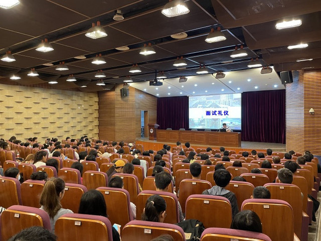 讲座中,施昊校友结合自己丰富专业知识、多年从业经验和作为面试主考官的面试经历,理论和实践相结合,从求职面试礼仪、求职十大技巧、求职十大法宝、面试的注意事项四个方面为同学们详尽全面的讲解了求职面试礼仪与技巧。首先,施昊校友从物件准备、服饰礼仪、需注意的小问题三方面详细的讲解了面试前的准备工作。其次,从进门时礼仪、谈话礼仪、身体语言礼仪、讲话时的嗓音等细节方面介绍了面试过程中的礼仪,特别强调了面试结束时也要注意主动告辞、表示感谢等礼仪。再次,施昊校友结合实例讲解了求职面试的十大技巧和十大法宝。最后,从环境准备、复试准备、谈吐礼貌、充分展示自我做好自我介绍、注意细节等方面强调了面试的注意事项。