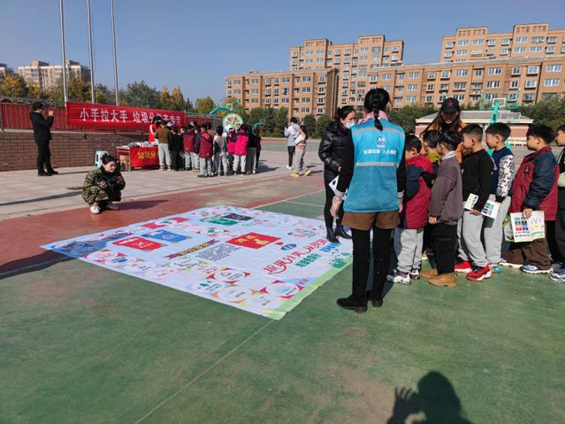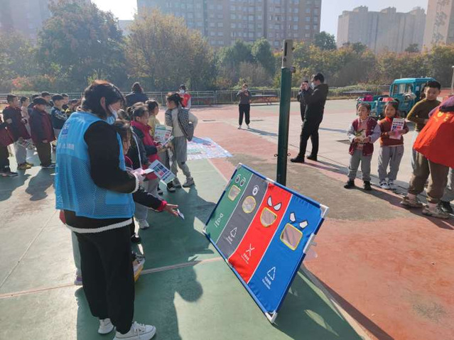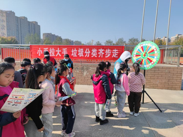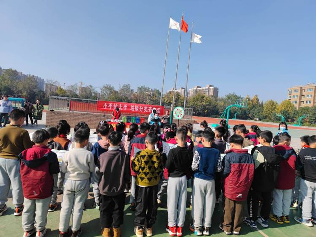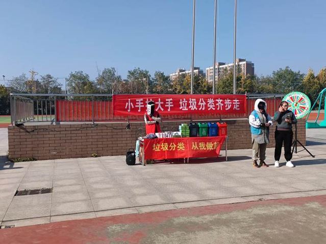 为了引导学生牢固树立垃圾分类意识,11月21日上午,大泉街道垃分办、城市治理公众委员及垃圾分类志愿者来到江苏师范大学附属实验学校小学部北校区开展“小手拉大手,垃圾分类齐步走”宣传活动。