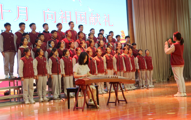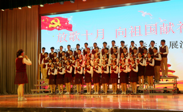 此次展演要求以班级为单位,各班学生全员参与,设1名指挥,自选爱国主题歌曲。前期,经过各学部200多个班级激烈的选拔赛后,共有18支优秀合唱队伍脱颖而出,参加展演,其中高中部两支代表队,国际课程班班一支代表队,初中部七支代表队,小学部八支代表队。