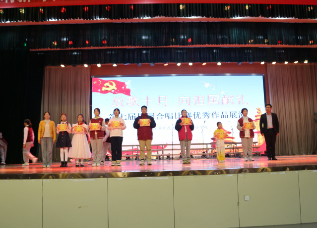 经过现场评委的打分,展演评选七23班,小学南校区三3班荣获一等奖,小学南校区三5班,小学北校区四2班,小学南校区四3班,九年级22班,七年级17班,九年级21班,八年级2班荣获二等奖,小学本部四1班,小学本部五6班,小学北校区二8班,小学本部六7班,高二4班,八年级15班,高一5班,七年级5班荣获三等奖。对应班级同时设优秀指导教师奖,并颁发证书及奖品。