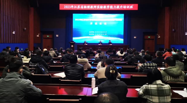 11月24日上午,“2023年江苏省中小学物理教师教师实验教学能力提升培训班”在我校开班。江苏师范大学教育科学学院(教师教育学院)党委书记张欣、物理与电子工程学院副院长魏明生及江苏省13个地市的120余位初高中物理教师参加了开班仪式。开班仪式由教育科学学院(教师教育学院)院长助理孙雪连老师主持。