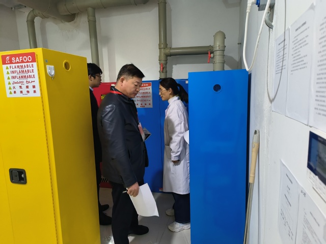 专家组现场抽查了化学与材料科学学院、分析测试中心、生命科学学院等重点部位和场所。现场检查结束后,专家组认真查阅了学校、二级单位实验室安全管理档案材料。