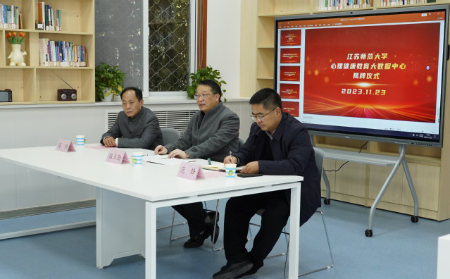 11月23日下午,江苏师范大学心理健康教育大数据中心揭牌仪式于百川教育研究院举行。校党委常委、副校长张玉勤,学生工作处处长范锋、教育科学学院党委书记张欣、教育科学学院院长高伟与心理健康教育大数据中心师生代表共同出席仪式。揭牌仪式由教育科学学院党委副书记王淑文主持。