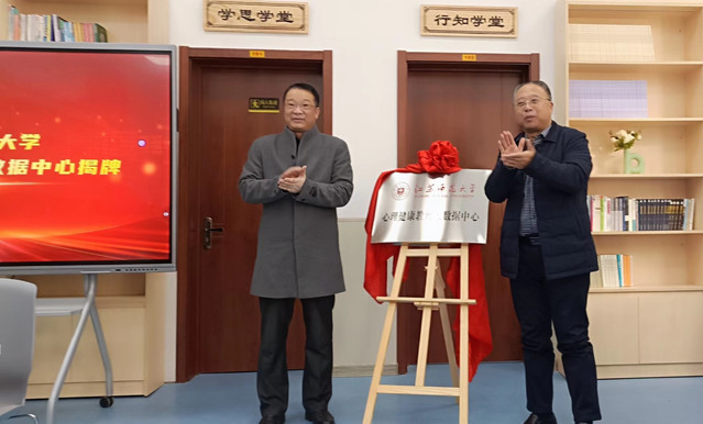 张玉勤校长和张欣书记共同为心理健康教育大数据中心揭牌。