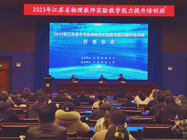 近期,物电学院承办的“2023年江苏省中小学物理教师实验教学能力提升培训班”顺利开班。协办单位教育科学学院(教师教育学院)党委书记张欣和我院副院长魏明生出席开班典礼。江苏省13个地市的120余位初高中物理教师参加了开班仪式。