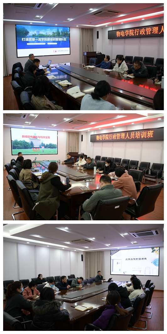 据悉,本次培训班也是院党委行政管理支部2023年“书记项目”《行政管理人员服务能力提升“1234”计划》的重要组成部分,除专题报告外,还组织了云龙湖实验室现场教学、读书分享会等活动,以丰富多样的活动形式增强了物电学院行政管理人员的服务意识和服务能力。