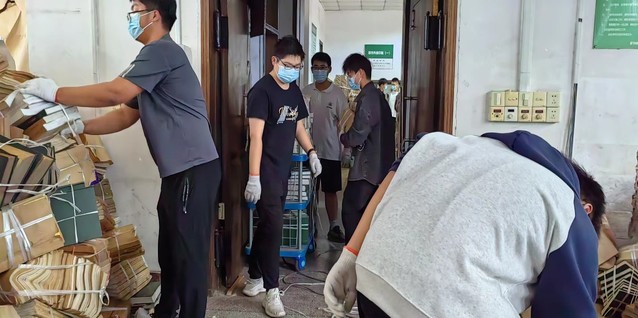 此次搬迁工作时间紧、任务重、强度大。在校领导和基建处、后管处、财务处等相关部门的关心与大力支持下,图书馆各部门职工密切协作积极参与,克服多粉尘、高温闷热、大强度等困难,不辞劳苦,连续作战。在抽取图书和书刊打包关键环节,组织党员开展主题党日活动、组织全馆职工双休日加班、组织云龙校区学生志愿者业务劳动进行突击,截至11月20日,所有图书及相关设备清空搬迁任务圆满完成,共打包、搬迁图书80余万册,打包图书堆放占地面积725㎡,总体积1232.5m³,总重量160余万公斤。图书及相关设备如期清空,为云龙馆焕新升级改造施工奠定了基础,搬迁工作展示了图书馆职工特别能吃苦、特别能战斗的精神风貌。