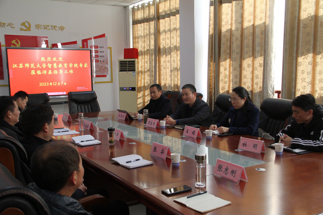 进一步加强校地联系,提升教育信息化服务效能, 12月7日上午,学院党委书记周显洋、教育技术系主任王娟教授、教育技术系党支部书记王运武教授、实验中心杜明主任一行4人走访沛县教育局,推进两地教育信息化建设合作交流。沛县教育局副局长、沛县教师发展中心主任朱信平、信息技术部主任袁龙强等参加交流活动。