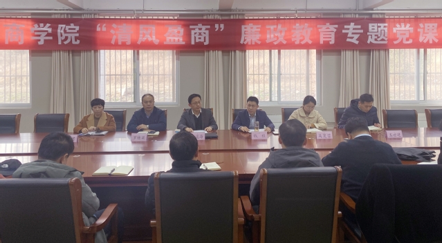 2023年12月6日,商学院举办“清风盈商”廉洁教育专题党课,校纪委副书记沈道海应邀作专题辅导,商学院党委书记钱程主持。学院领导班子成员、系主任、支部书记、行政人员参加活动。