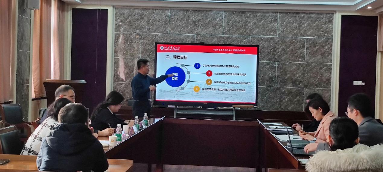 随后,胡福年教授、张兆军副教授和刘战副教授分别展示了《现代电力系统分析》、《矩阵论》和《现代电力电子技术》三门课程的课程思政建设成果。他们从课程简介、课程目标、课程思政建设、课程思政内容以及特色与创新等方面,具体展示了电气工程学科在课程思政建设方面的积极探索。