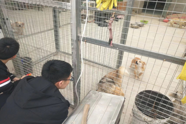 走过铁门,志愿者们又与一个寒假未见的小动物们见面了。距上次探望已经过去数月,小猫小狗也在这几个月中长大了许多。志愿者们进入栅栏里,抚摸小动物们和他们亲密接触。小猫小狗对我们的到来很是欣喜,到处蹦跶着,使志愿者们感受到生命的活力。一只眼睛受伤的小猫咪蜷缩在小角落里,那只失去了双腿靠轮子行走的狗狗还依旧坚强。陪伴小动物的这一刻,两种不一样的生灵得到彼此的温暖,同时也让我们寻找到自己存在的意义,也许我不懂它们的耳语,但心却靠的很近。志愿者们并且帮助管理猫园的叔叔制作了简易的猫窝狗窝,让这些小生命在临近夏天的时候居住的更舒适。