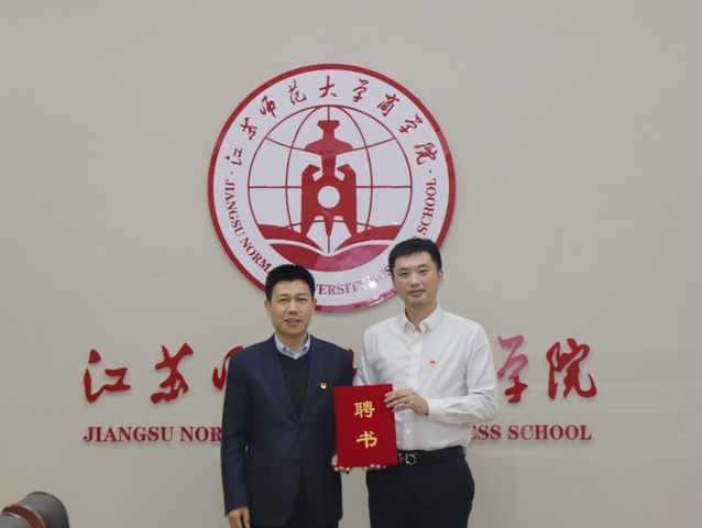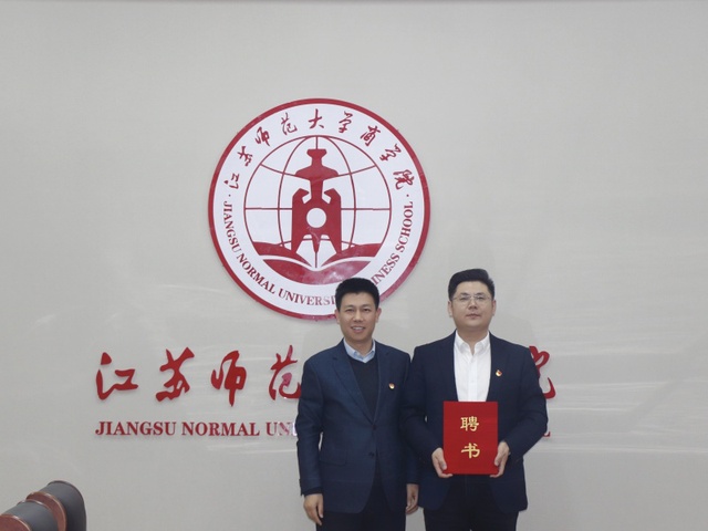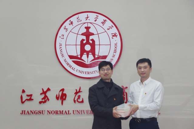 钱程对华泰证券徐州地区党支部的到访表示热烈欢迎,感谢华泰证券徐州地区党支部为学院金融工程系和学子提供的物质帮助和支持,希望双方在人才培养、学生就业实习等方面开展更加深入的合作。张正兴介绍了华泰证券的发展历程、业务版块等公司基本情况,对本次活动目的和意义进行了说明,希望通过支部党员特殊党费的捐赠,鼓励受资助的学生们奋发向上、励志成才。商学院金融工程党支部书记李刚、商学院党委副书记吴夏蓉代表学院接受了华泰证券徐州地区党支部捐赠的图书和经费。钱程为张正兴、焦帅颁发了“商学院就创业校外实践指导教师”聘书。