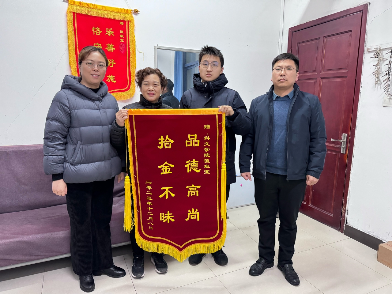 12月13日上午,一面突然而至的红色锦旗被送往西教14#楼值班室,这面书写着“拾金不昧 品德高尚”的锦旗,似乎在诉说着一起平凡而又暖心的小故事。