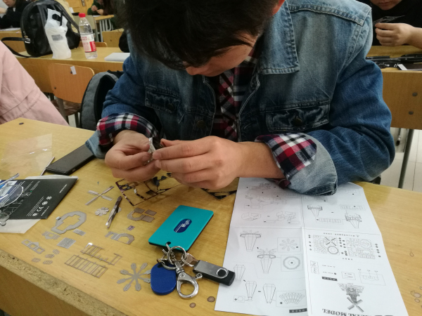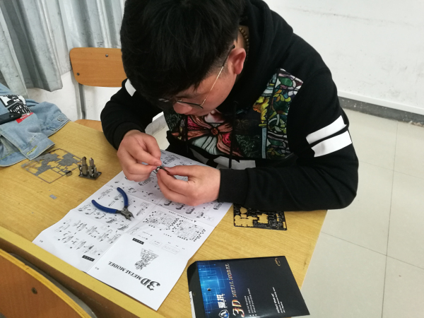 赛前,工作人员细心地为大家准备了各种模型,工具,并且耐心地在现场指导同学如何剪下零件。模型拼装分为三个难度级别,其中有单人赛,也有组队赛。同学们在比赛过程中细致耐心地拼装,还不忘鼓励身边的同学,通过他们认真的眼神,能感受到他们对活动一丝不苟的态度,同时透露出对模型拼装的热爱。在拼装时间结束后,同学们展示出各自拼装的作品,有高大威猛的擎天柱,有气势恢宏的凯旋门,有别具一格的摩天轮,也有美轮美奂的荷兰风车。
