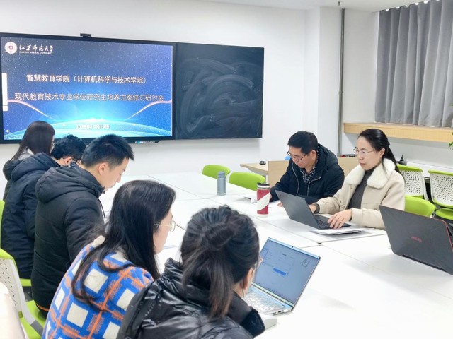为深入贯彻党的教育方针,落实立德树人根本任务,提高现代教育技术专业学位研究生培养质量,按照全国教育专业学位研究生教育指导委员会及学校研究生院有关要求,学院于12月15日在9号楼913会议室及腾讯会议召开了现代教育技术专业学位研究生培养方案修订研讨会。会议由现代教育技术导师组组长王娟教授主持,行业专家代表徐州市第三十四中学郑茜老师、导师和任课教师代表杨成教授、安涛教授、李康康博士、赵雪梅博士、研究生秘书黄有玉老师出席,以及部分研究生代表参加。