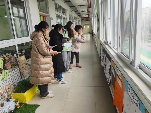为了提升教师对环境创设理念的认识,使之更深地意识到环境创设对幼儿教育的重要性,使幼儿园的环境更好地起到教育的作用,让幼儿真正在与环境的互动中成长,让环境与幼儿对话、与家长对话,发挥环境第三位教师的作用。12月15日上午,在园长刘凤芝的统筹安排下,副园长和奕杉、孙婧涵,保健老师李梅,带领小、中、大班三位年级组组长对全园进行了环境创设评比活动。