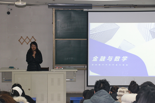 12月15日,数学与统计学院邀请国泰君安期货有限公司高管姚蓉勤来院作题为“金融与数学——漫谈金融行业与数学学科学生就业选择”的专题讲座。学院统计学科带头人、统计学导师组组长谢颖超教授,学院辅导员、本科生和研究生约200余人参加讲座。讲座由院党委副书记谭建东主持。