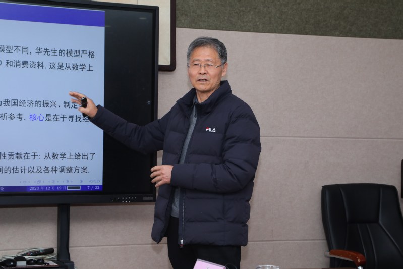 数学研究院常务副院长谢颖超教授汇报投入产出理论实现的突破性创新,以通俗的方式讲解了华罗庚经济优化理论和陈木法院士对华氏经济优化理论的修正与更新。通俗地介绍了关于经济的四个基本课题:经济的平衡解与稳定性分析、产品等级序与分类、经济预测与调控、经济结构优化等。