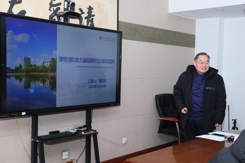 数学研究院执行院长苗正科教授分别从国家政策、学校支持、社会赞助、近期工作与计划等四个方面介绍了学校(院)发力基础研究的具体措施,他强调数学研究院的成立和数学研究院大楼的建设,为我们引聘大专家、承担大项目、产出大成果做好了平台准备。