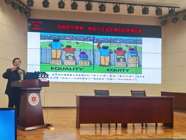 12月20日14:30,江苏省幼儿保教质量与评估专家、常州市新北区学前教育教研员、我校2002级学前教育专业校友徐志国老师应邀为教育科学学院(教师教育学院)师生作了主题为“延续师大精神,做自己专业发展的长程规划者”的讲座。本次讲座在13号楼106报告厅举行,刘剑眉副教授主持,学前教育专业本科生和研究生参加。