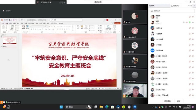 为贯彻落实《关于进一步加强本科学生教育管理工作的通知》《关于进一步加强研究生思政与教育管理工作的通知》等文件的工作要求,进一步提高学生安全防范意识,公共管理与社会学院于12月18日-22日组织开展“牢筑安全意识,严守安全底线”校园安全主题教育活动。