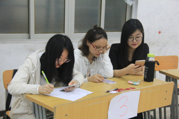 此次诗词大会分为三个赛区,分别在三个教室进行。比赛在形式上大力创新,采用淘汰制和“飞花令”的内循环竞赛机制。经过初赛、复赛和决赛等环节的角逐,9组选手从36组参赛选手中脱颖而出。14时30分,比赛准时开始,选手需依次通过选择题、对诗成句、九宫格、飞花令等决出胜负。比赛现场气氛紧张而又激烈,选手从容淡定,应答自如,展示出了他们深厚的诗词功底,场面热烈精彩,引得现场掌声不断。尽管有些题目也十分有难度,但他们没有被吓到,回答错误就给自己加油打气。