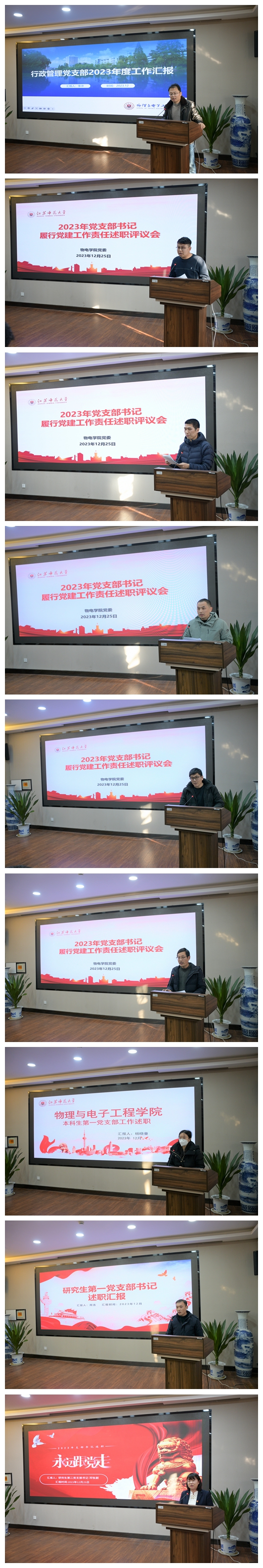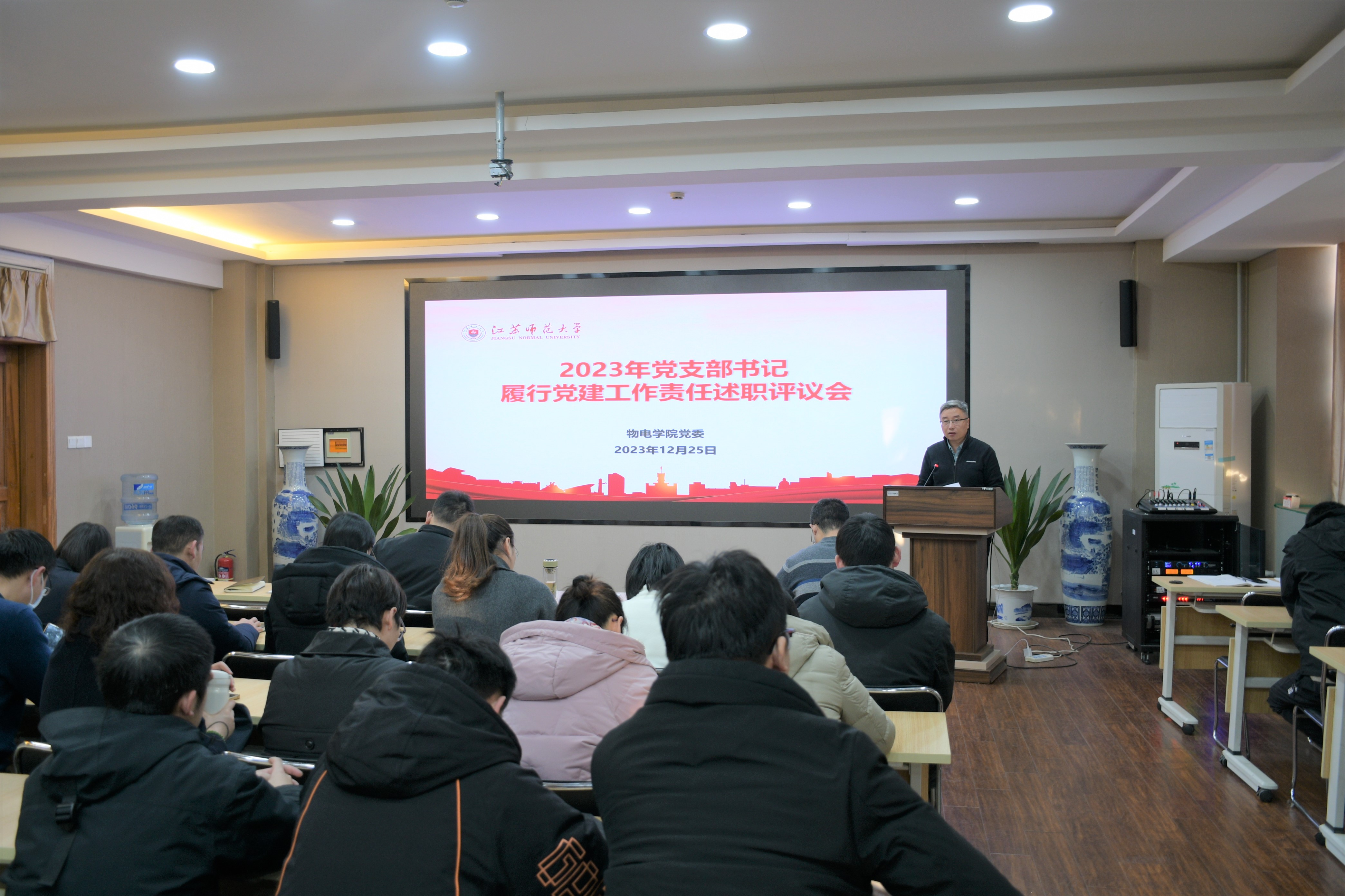 2023年12月25日下午,物电学院召开2023年党支部书记履行党建工作责任述职评议会,物电学院全体党员参加会议。会议由院党委书记王夫寿主持。
