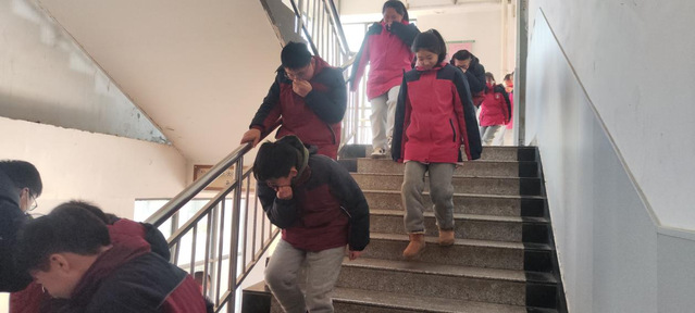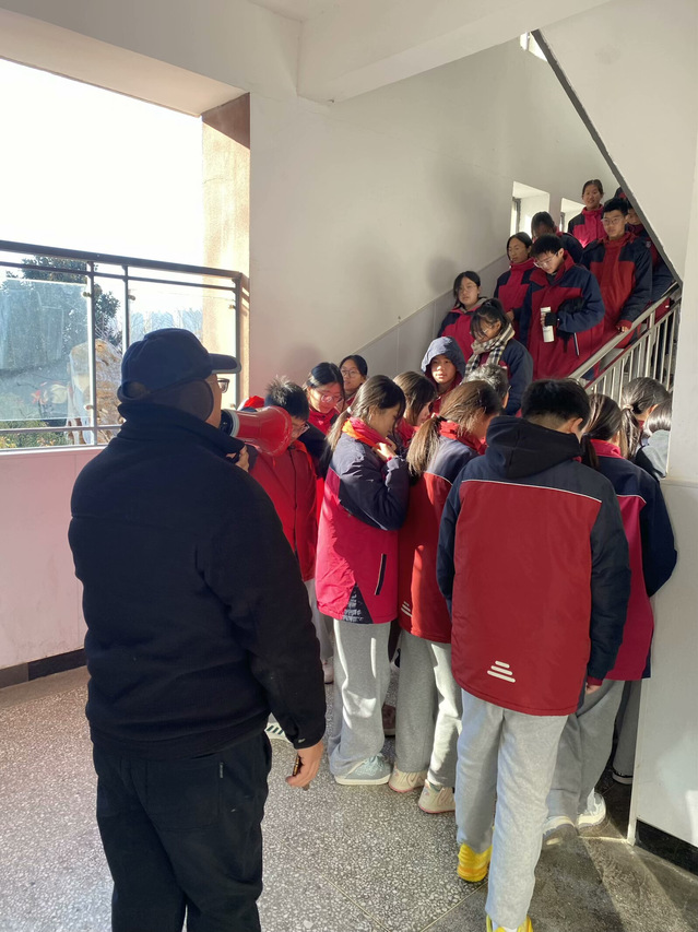 为实施好这次演练,初中部制定了详细的消防疏散演练方案,对各班逃离的路线及每位配班老师、每层楼梯口的值班老师的职责都作了明确规定。演练开始前,各班主任给学生介绍了简单的逃生注意事项和方法。