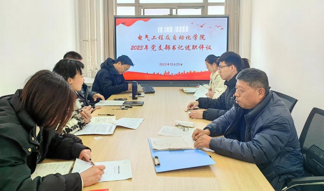 12月25日下午,电气学院党委在12#617B会议室召开2023年度党支部书记履行党建工作责任述职评议会,会议由院党委书记潘震鑫主持。