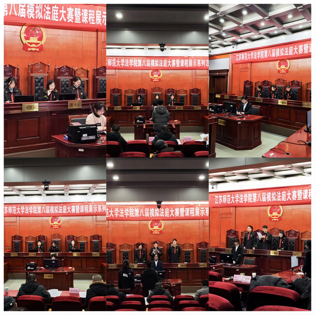 2023年12月21日至22日,江苏师范大学法学院第八届模拟法庭大赛暨课程展示活动在江苏师范大学模拟法庭(泉山校区17号楼100B)举行。本次大赛暨课程展示系列活动为期两天,模拟法庭大赛的案件原型均为在审中或未公布判决书的实际案件。
