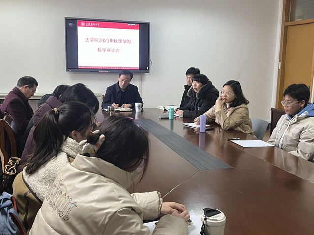 2023年12月20日下午,法学院2023-2024-1学期教学督导组期中教学检查座谈会在泉山校区16号楼616举行,法学院督导组全体成员、张峰振副院长和法学院各班代表参加会议,会议由法学院督导组组长张春艳教授主持。