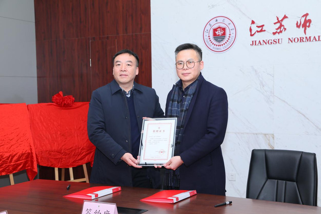江苏师范大学党委副书记蔡国春、北京东卫(南京)律师事务所主任陈斌为成立江苏师范大学教育法学研究中心举行揭牌仪式。江苏师范大学原党委副书记、副校长刘广登、北京东卫(南京)律师事务所主任陈斌为成立江苏师范大学党内法规研究中心举行揭牌仪式。