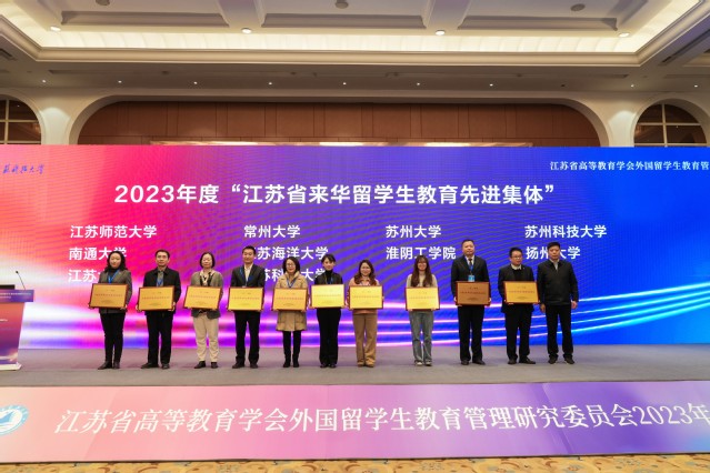 年会对2023年来华留学生管理工作进行了总结,对2024年工作进行了部署,相关单位进行了经验分享。大会表彰了一批全省留管先进,我校被授予2023年度“江苏省来华留学生教育先进集体”称号,董海宁同志、樊双元同志被评为“2023年度江苏省留学生教育管理先进个人”,李京展同志被评为“2023年度江苏省优秀留学生辅导员”。留学生辅导员李京展做大会交流发言《做“六有”留学生辅导员》,我校制作的留管工作纪实视频《这一年》在大会开幕式上展映。