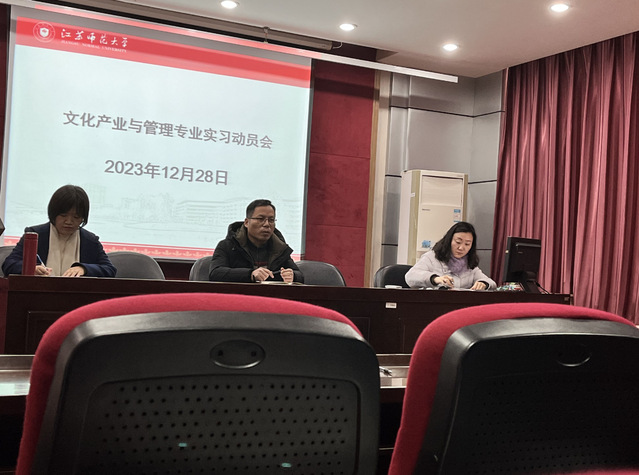 2023年12月28日下午,历史文化与旅游学院文化产业管理专业在学院报告厅召开2020级文化产业管理专业实习动员会,2020级文化产业管理专业同学,文化产业管理系主任张培奇老师,副主任房芳老师、班主任王蕊老师参会。本次会议旨在让同学们充分认识到专业实习的重要价值,了解各实习点的具体情况和实习要求,动员各位同学积极参加集中实习。