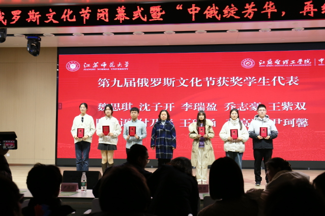 闭幕式上宣读了《关于表彰2023年江苏圣理工学院-中俄学院第九届俄罗斯文化节系列竞赛获得者的决定》《关于表彰2023年江苏圣理工学院-中俄学院“大学生年度人物”获得者的决定》,并对获奖师生进行现场授奖表彰。