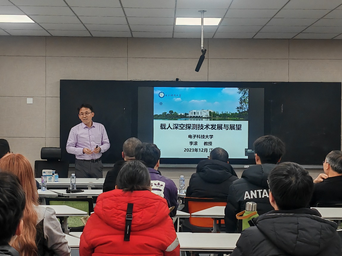 李滚教授以《载人深空探测技术发展与展望》为题,通过诙谐幽默的方式将晦涩难懂的原理和现象讲的生动形象和通俗易懂,从人类探索浩瀚宇宙的欲望和中华民族的飞天梦来告诉我们从古至今人类对神秘宇宙探索从未间断过,为了挑战人类智慧的极限,人们探索太空,逐梦航天。