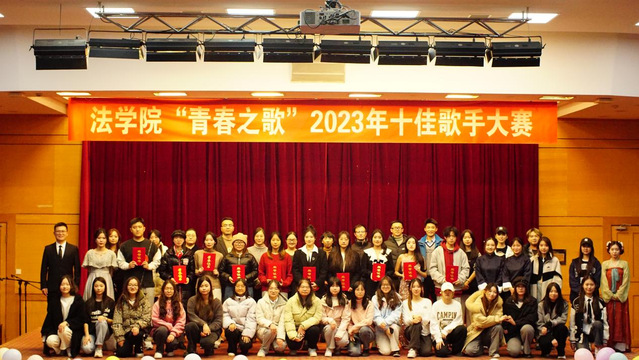 11月17日晚,江苏师范大学法学院“青春之歌”2023年十佳歌手大赛在敬文报告厅顺利举行。出席本次比赛的嘉宾有法学院党委徐韦华副书记、法学院张春艳老师、法学院盛豪杰老师、法学院张军凤老师。法学院陈建福老师、张杰老师担任此次大赛评委。比赛由郑森、杜彭昕主持。