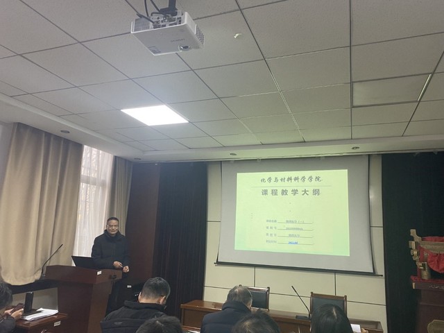 12月20日下午,化学与材料科学学院在化学楼211会议室举行教学大纲示范活动。本次活动由教学院长刘建全教授主持,物化教研室主任张为超老师主讲,全体教师参加了此次活动。