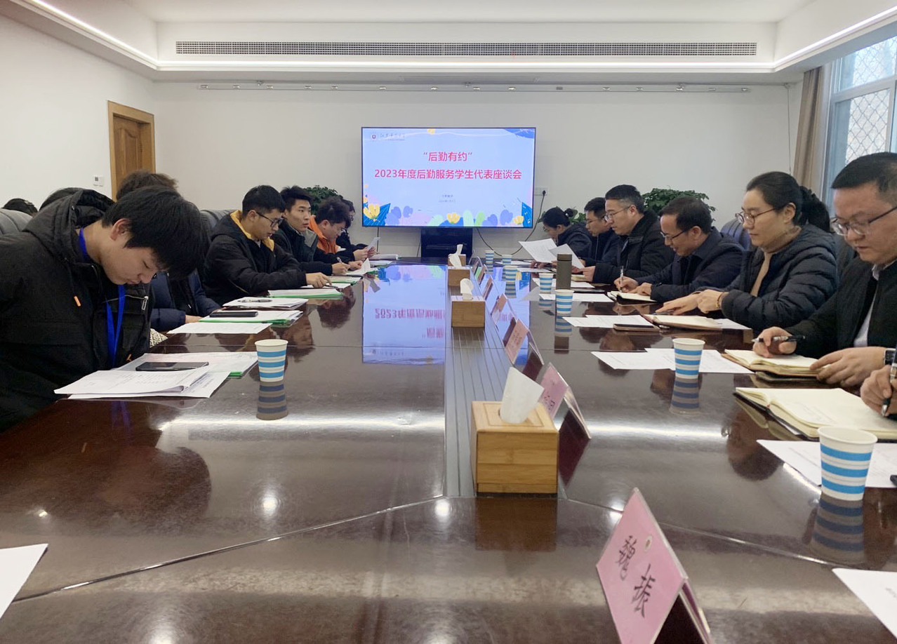 为更好地促进与学生之间的沟通和交流,倾听学生意见与建议,不断提升后勤管理服务水平,1月5日下午2:30在集团会议室召开2023年度后勤服务学生代表座谈会,后勤集团党委书记蒋国杰,有关中心(部门)主任以及来自泉山校区的23名学生代表面对面交流,聆听学生所思所想,现场解决实际问题。