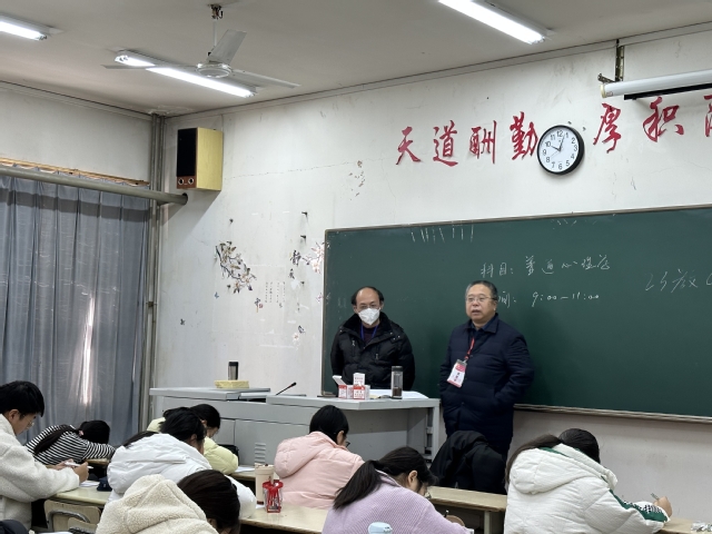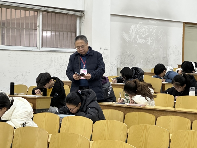 根据学校工作安排,2023-2024学年度秋季学期期末考试于2024年1月6日至2024年1月19日期间进行。为进一步加强考风考纪,开展学生诚信考试教育,培育和树立良好的学风,保证考试的严肃性和公正性,2024年1月15日上午9点,教育科学学院书记张欣、院长高伟、副书记王淑文、副院长陈鹏、副院长王娟、院长助理孙雪连对我院设在17号楼、8号楼和泉山西教8号楼的考场进行考试巡视。在巡视过程中,学院领导重点检查了试卷印制分发、考试纪律、学生证件、学生座位安排等相关内容。监考教师准时出勤,能以高度的责任心投入到监考工作中,工作细致严谨,认真履行了监考职责。考试期间考试纪律良好,考试规范有序、考纪严格。