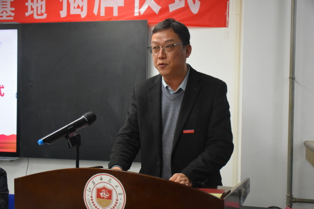 董永权首先向与会领导、嘉宾致欢迎辞,通过介绍学院发展历程,回顾了学院依托产教融合,推进专业建设与社会服务方面的工作开展,表示将以基地建设为契机,在学校指导下,学院统筹各方资源,与合作企业携手,高质量完成各项建设任务。合作企业代表、青软集团联合创始人、副总裁李刚在发言中,表达了全力参与协同智慧教育学院“办教育”的情怀和信念,为基地建设中,全方位投入企业优势资源,努力打造产教融合“互利共赢”的美好愿景。基地建设负责人、副院长祝义汇报了智能教育软件产教融合基地的历史沿革、建设基础、计划任务。