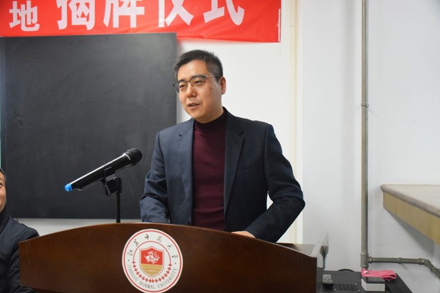 赵鹏在活动中讲话,对学院专业建设的新突破表示祝贺,对一直以来关心支持学校事业发展的合作企业表示衷心的感谢。赵校长介绍了江苏师范大学近年来事业发展情况,特别是学校积极贯彻落实教育部、省教育厅关于“加强产教融合,提升人才培养质量”的部署要求,主动面向区域、面向产业办学,深化人才培养供给侧结构性改革,不断推进产教融合项目和平台建设。他肯定了基地“五共同+五融合”的产教融合发展思路,期待学院和合作企业坚持特色发展,通力配合,锚定目标,科学谋划,扎实推进,着力于建立校企共同制定培养目标、共同建设师资队伍、共同建设实践基地、共同构建课程体系、共同开展技术研发的“五共同”产教融合长效机制,实现资本融合、技术融合、标准融合、人才融合、创新融合“五融合”协同创新模式的高质量完成。赵鹏希望江苏省产教融合重点基地建设点(智能教育软件产教融合基地)找准定位,坚持特色发展;铆钉目标,促教育教学成果转化;深度融合,打造人才集聚新高地;打造学校产教融合建设的“金字”招牌。