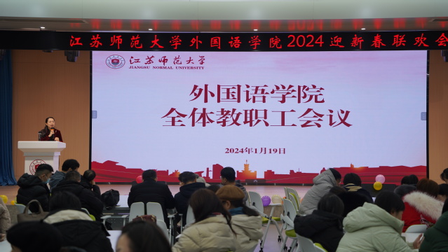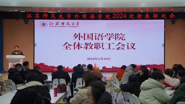 1月19日上午,外国语学院召开全体教职工大会,回顾总结前一阶段工作,布置近期及假期相关工作安排。会议由学院党委书记庄园主持。