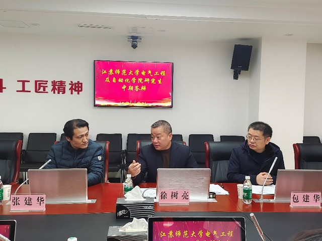 本次中期检查邀请了徐州地铁运营有限公司徐树亮总经理(正高级工程师)作为答辩组长,王佳祥高级工程师、徐雷涛高级工程以及校内3位老师作为答辩组成员,6位研究生同学参加答辩。答辩开始前,张建华副院长代表学院感谢徐州地铁运营有限公司长期以来对电气学院人才培养的大力支持和对本次中期检查工作的全力配合,说明了企业中期检查答辩的目标,期望以此为切入点,加快构建研究生校企联合培养新模式,全面提升培养质量和培养成效。