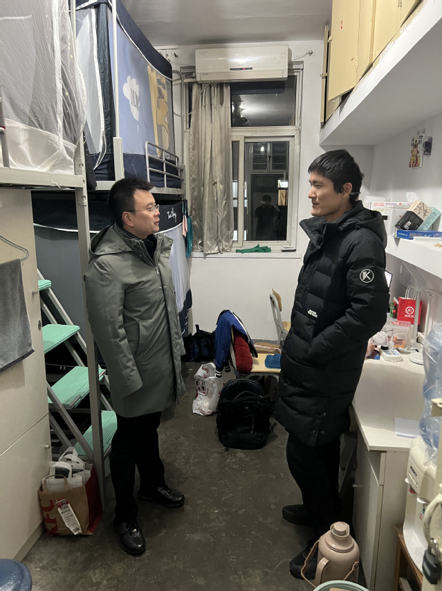 1月23日晚,由学院副书记赵明、副院长张乐带队,导师、研究生辅导员共同参加,对留校研究生逐一走访。本次共走访校内宿舍33个,校外住所11个,走访研究生57名,实现全覆盖。通过面对面的沟通交流,了解到了学生的生活学习情况和诉求,有利于进一步做好对学生的关注关心工作。随后,副书记赵明会同江苏省先进激光技术与新兴产业协同创新中心办公室主任李雷,对学院实验室开展安全检查,了解实验室假期使用情况,排查安全隐患,要求留校研究生严格遵守实验室管理规定和实验操作规程,确保实验过程安全,严禁在实验室留宿等。