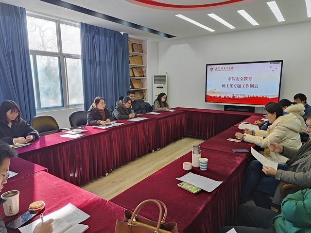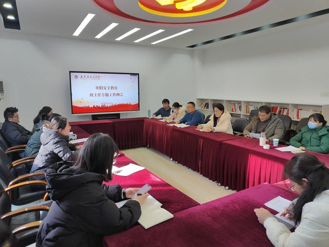 会议围绕寒假期间学生安全管理教育、困难学生资助与心理问题、社会实习实践工作等事项进行部署。朱和卿强调,一是做好本学期学生离校及校外走读学生返家清查工作;二是掌握离校学生的动向,电话逐一落实返乡情况;三是做好学生假期安全教育工作,提醒学生注意交通、人身、财产安全,杜绝各类安全隐患;四是完善全体学生基本情况信息登记表,建立“一生一档”数据库,落实信息化管理。此外,要密切关注学生思想动态,坚持抓思想政治教育不停步,抓安全管理工作不松劲,抓心理健康建设不拖延。