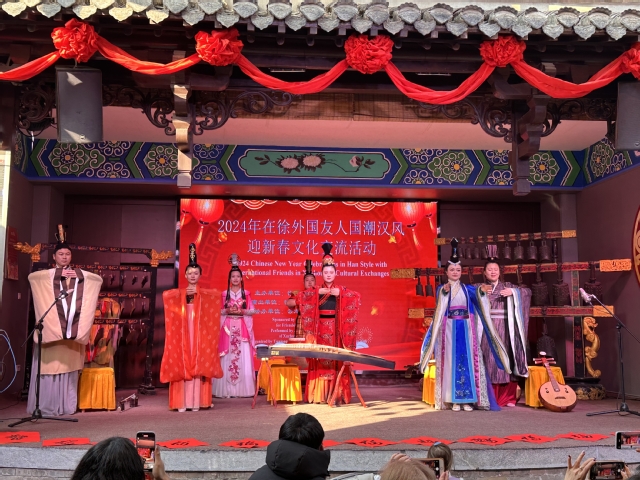 2024年1月27日,受徐州市对外友好协会邀请,江苏师范大学国际师生来到徐州市回龙窝国潮汉风馆,共同参与了一场别开生面的文化交流活动,喜迎新春佳节。