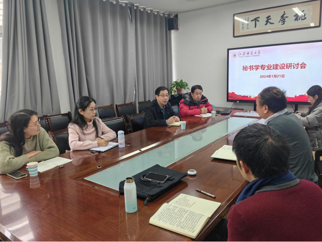 为找准学科发展方向,有力推进秘书学专业建设,1月21日上午,文学院在305会议室召开秘书学专业建设研讨会,院长王立增与秘书学专业全体教师参加了研讨会。