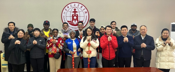 随后,学院领导为国际学生们发放了新年慰问礼包,询问了解国际生在校学习、生活情况和假期安排,叮嘱国际生注意安全防护、保持身心健康,度过一个欢乐祥和的春节。最后,学院领导与国际学生们合影留念,记录下这一温馨时刻。