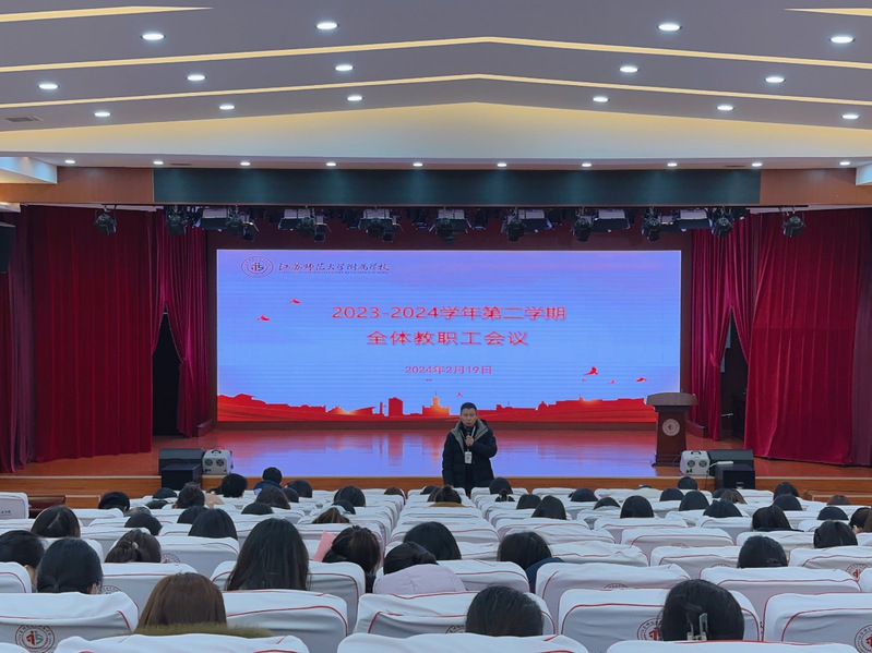 为有序做好新学期工作,2月19日上午,江苏师范大学附属学校在小剧场分别召开中层干部(扩大)会议和全体教职工会议,部署新学期工作。会议由副校长李辉主持。校领导班子成员、中层干部及全体教职工参加了会议。